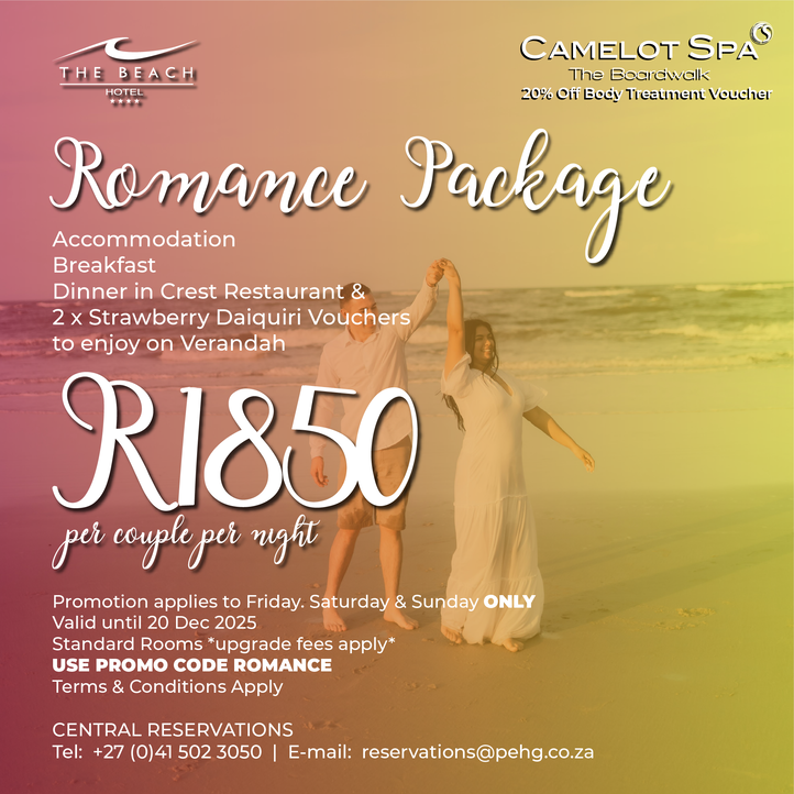 Treat yourself and your partner to a relaxing weekend escape at The Beach Hotel with our Weekender Package, available for just R1850 per couple, per night.