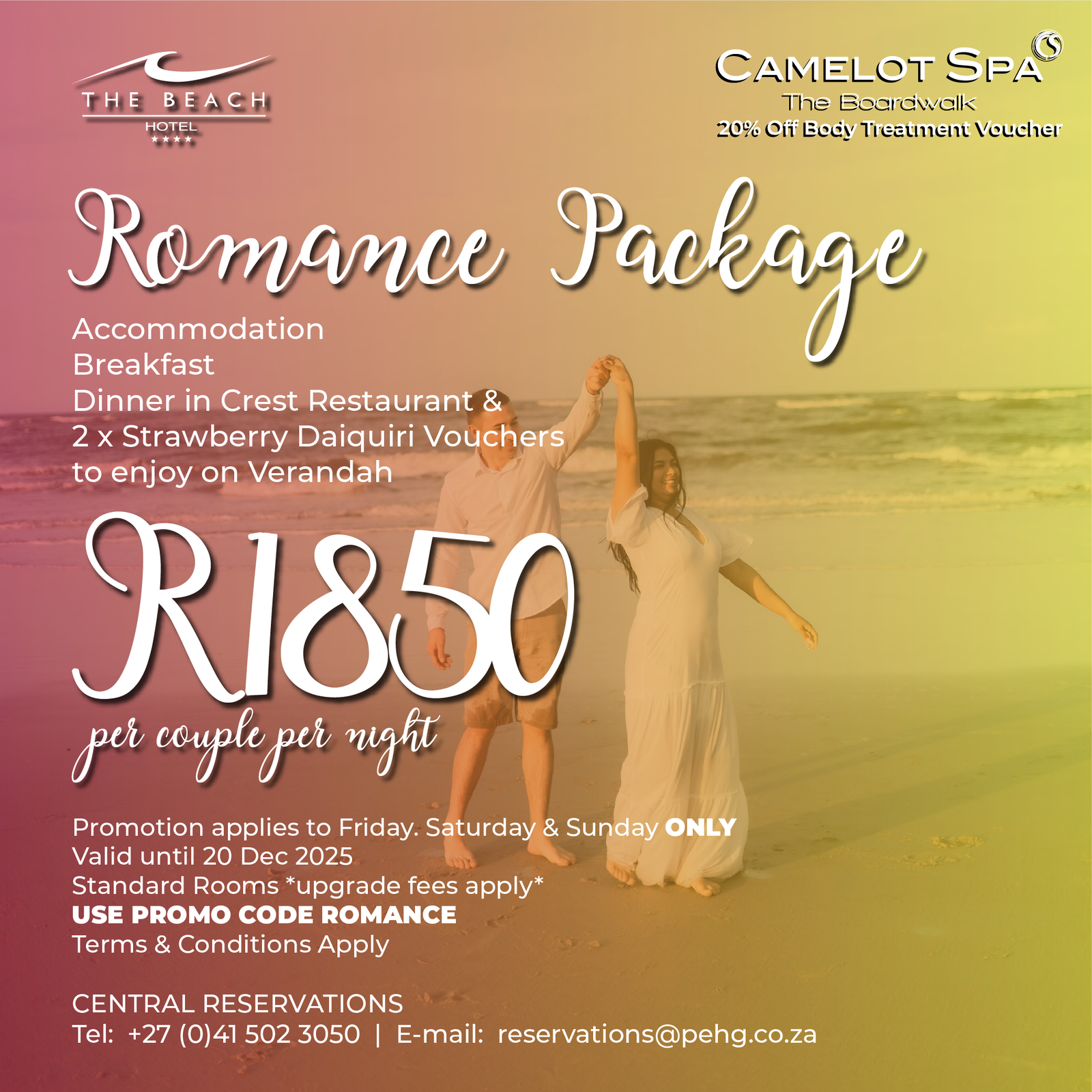 Treat yourself and your partner to a relaxing weekend escape at The Beach Hotel with our Weekender Package, available for just R1850 per couple, per night.